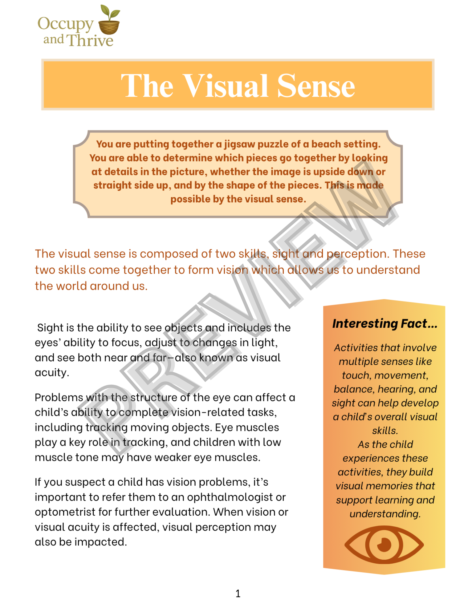 Downloadable PDF's Fine Motor Skills $6.00 Add To Cart Added! Sensory Processing Overview $3.00 Add To Cart Added! The Tactile Sense $3.00 Add To Cart Added! The Proprioceptive Sense $3.00 Add To Cart Added! The Vestibular Sense $3.00 Add To Cart Added! The Auditory Sense $3.00 Add To Cart Added! The Visual Sense $4.00 Add To Cart Added! The Olfactory & Gustatory Senses $3.00 Add To Cart Added! Sensory Processing Bundle $16.00 Add To Cart Added! Handwriting and the Senses $6.00 Add To Cart Added!